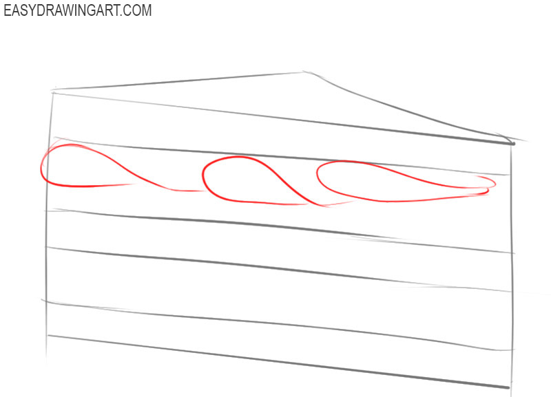 Now, with the help of several light lines, we create three more slicing pieces as the artists of Easydrawingart.com did in the figure below.